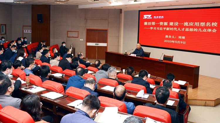 鄧理在報告中以《激活第一資源建設一流應用型名校——學習習近平新時代人才思想的幾點體會》為題,圍繞“正確認識是前提;遵循制度是基礎;德才兼備、以德為先是原則;用心尊重是關鍵;人人皆可成才、人人盡展其才是目的”等五個方面,詳細闡述了習近平總書記關于新時代人才工作的重要論述重要指示精神,針對如何激發人才創新活力,為我校一流學院建設提供有力的人才支撐作出了具體指導。