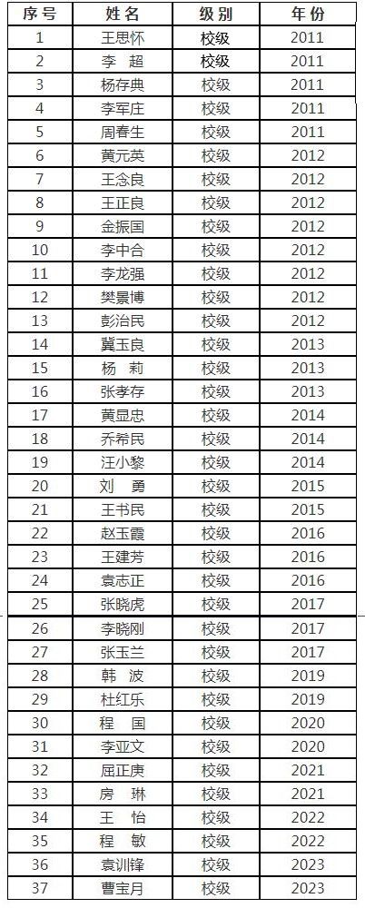 省級教學名師一覽表